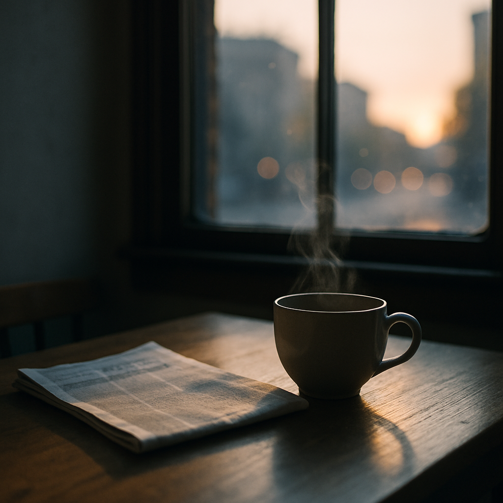 Ik word wakker met een kop die mijn ochtend kantelt. Tussen gordijnstroken drijven de eerste regels binnen, lichter en toch…