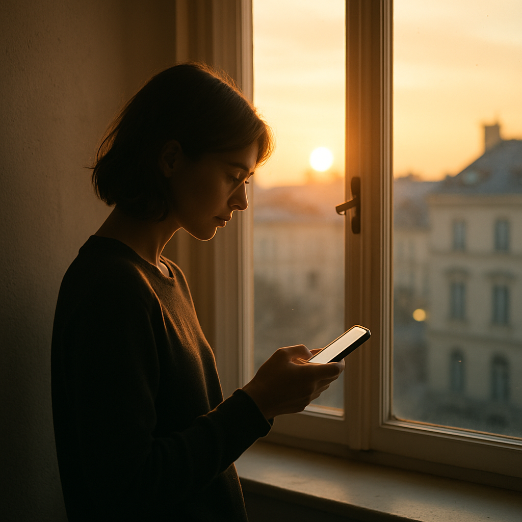 De ochtend hing als een dun gordijn tussen nacht en dag, en ergens in dat zachte grensgebied schoof een bericht…